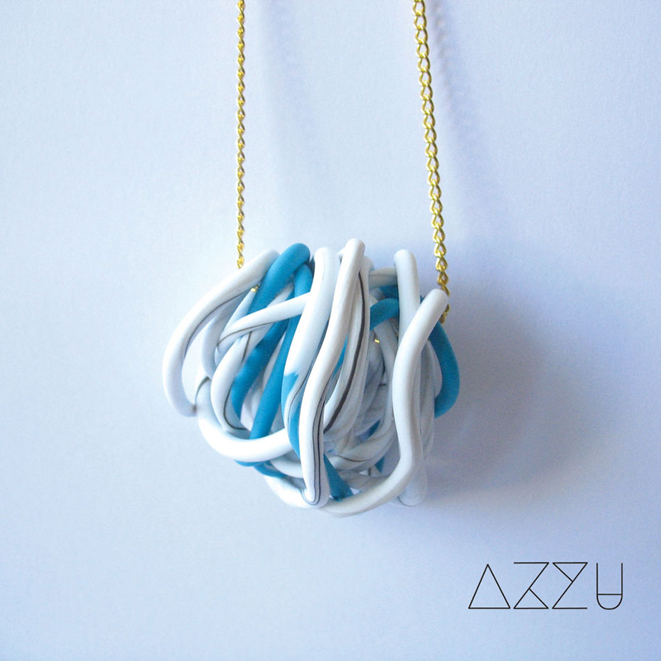 Prvi komadi nakita su nastali pre dve godine, dok sam ozbiljnije počela da se bavim izradom pre godinu dana. U to vreme sam pravila skulpturu u okviru projekta jedne galerije na kojem sam učestvovala. Ono što sam želela da izvedem, bilo je gotovo nemoguće, obzirom na to da kao slikarka, nisam dovoljno dobro poznavala materijale i rešenje sam na kraju našla u poliesterskoj smoli sa kojom sam se tada prvi put susrela. Bila sam fascinirana mogućnostima koje materijal pruža i tek kasnije sam počela više da istražujem o istom. Zanimljivo je da me izrada nakita nikada nije zanimala, iako se nekako podrazumeva da mi je to blisko. Istraživanjem po internetu naletela sam na komade nakita za koje sam mislila da su napravljeni od poliesterske smole i poželela da napravim sebi nešto slično. Međutim, kako nisu bili od materijala od kojeg sam prvobitno mislila da jesu, ti prvi komadi su bili daleko od onoga što sam videla i poprilično su me namučili. Ali nastalo je nešto jedinstveno i originalno, na šta sam i dalje ponosna. Kasnije sam sve više i ozbiljnije istraživala i nalazila materijale koji su pogodniji za izradu nakita. Ohrabrena reakcijama drugarica, počela sam da izlažem na Modi za poneti, Mikser bazaru, Wamp sajmu u Beču. Tek nakon toga, kada su novonastali komadi dobili svoj naziv, logo i ambalažu koje je dizajnirala Ivana Jović, zvanično je nastao Azzu.