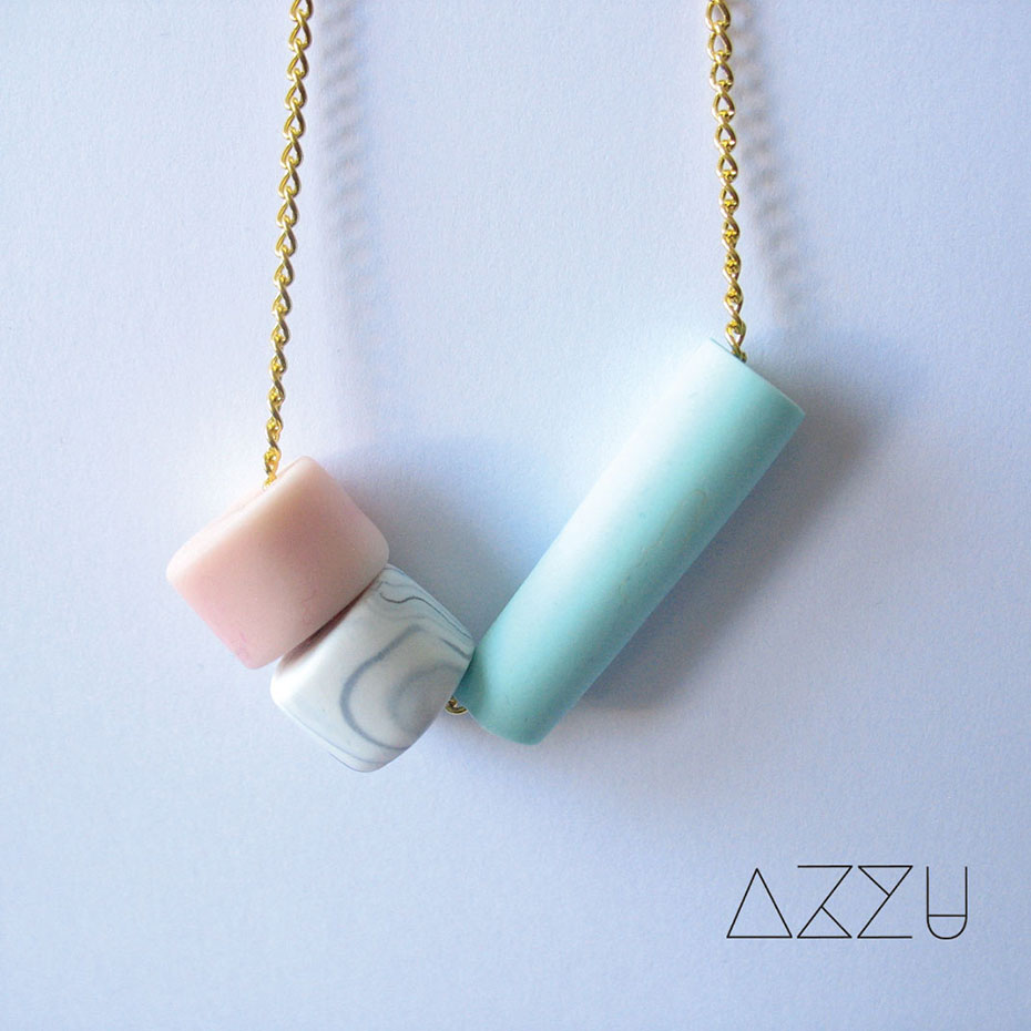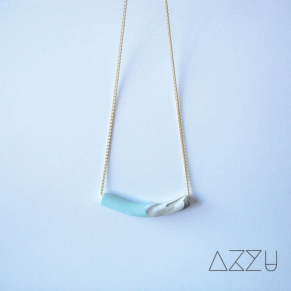 Već neko vreme, osnovni materijali od kojih nastaju Azzu komadi su polimerna glina, epoksidna smola i pigmenti. Pri odabiru, najbitnije su mi karakteristike materijala, od kojih zavisi kvalitet komada. Bitno mi je da su komadi kvalitetni i otporni na fizička oštećenja. Kada su ispunjeni svi uslovi koji se tiču idržljivosti materijala, mogu da se posvetim odabiru boje. Obično traje danima, dok ne pronađem odnos boja koji sam zamislila u svojoj glavi, jer često u praksi, ne izgleda onako kako smo zamislili. U poslednjim komadima sam koristila samo pigment sa epoksidnom smolom, koji daje posebnu dubinu i teksturu nakitu.