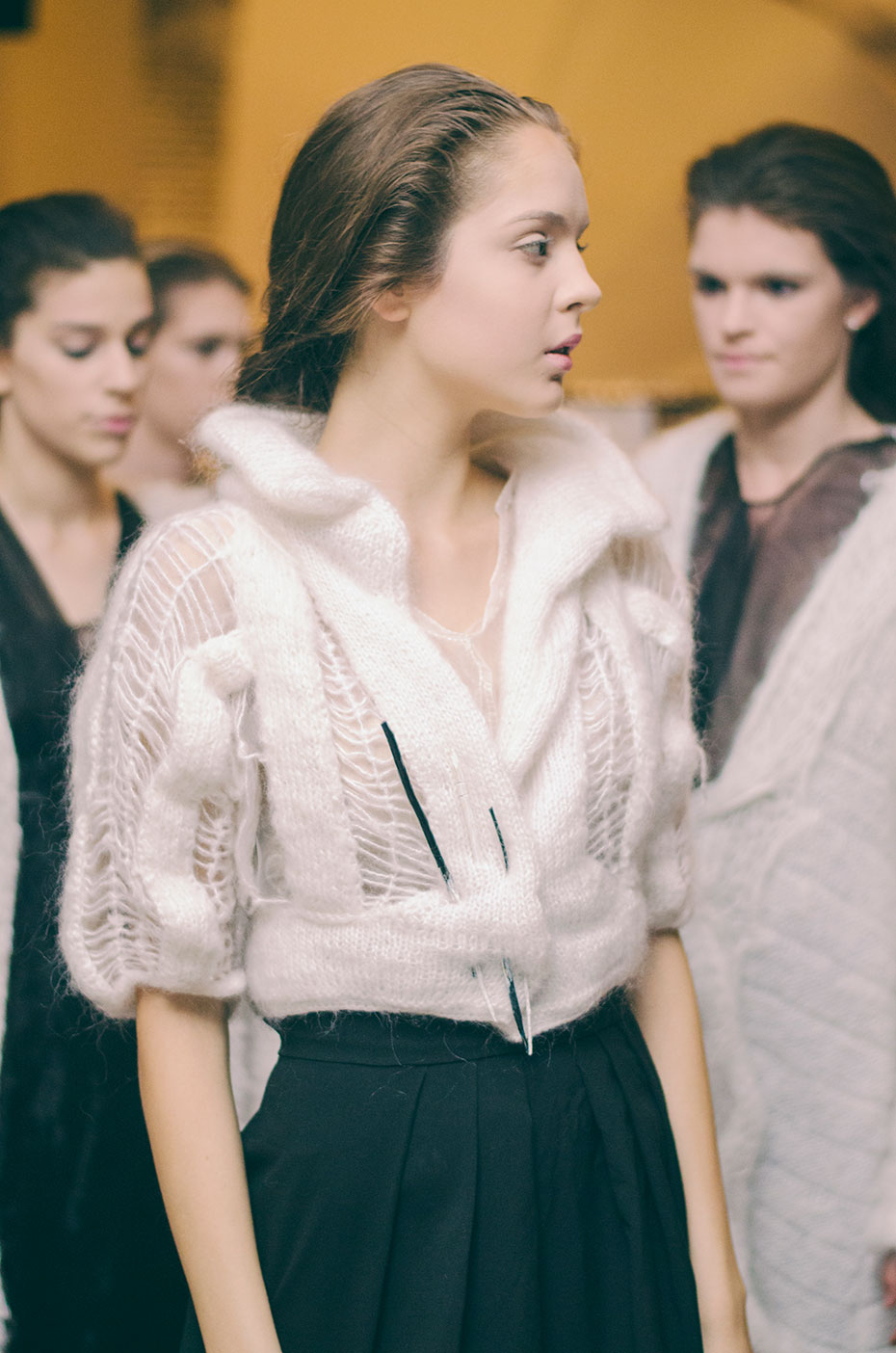 “Oduvek su me interesovali tekstilni i modni dizajn, naročito sam proces stvaranja tkanina ili materijala od koga se kasnije stvara i odeća. Pletenje je idealno za taj cilj i takođe jedan jako važan akcent u mojoj kolekciji “Spirits of the past”. Ona je inspirisana starinskim tehnologijama i zanatima kao što su pletenje, tkanje, rad sa vunom ali i reciklažom. Cilj ove kolekcije je da poveže nekoliko važnih ideja, emocija i tradicija, sa velikim akcentom na etiku u modi. “