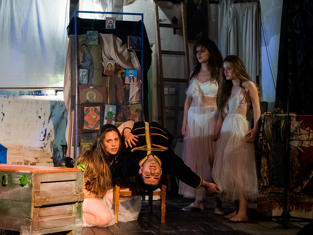 Pet improvizovanih redova za sedenje i četiri fotelje sa strane. Smederevac u uglu pokazuje da su opremljeni i za zimske dane kada padne temperatura. Publika je mešovita, a mikrofon se nazire u uglu. U pozadini se čuje duhovna ruska muzika koja nadjačava žamor i graju u prostoriji. Svetla se gase, a glumci sa upaljenim svećama koračaju ka sceni. „Snovi Ksenije Petrogradske” predstava je u kojoj se predstavlja četvrti stub – pravoslavlje. Snažna, emotivna i iznad svega duboka predstava donosi na svetlost dana priču o ženi koja je ljubavlju pobedila i vreme i smrt. Tri devojke i dva momka nose čitavu glumačku postavku. Impozantni vokali u kombinaciji sa snažnim tekstom držali su pažnju punih sat i po vremena. U prigušenoj prostoriji mogli su se čuti uzdasi i uočiti radoznali pogledi uprti ka sceni. Svaka scena jeste mala predstava i priča za sebe. Duhovna muzika kao šesti nevidljivi član pruža posebnu jačinu ovoj priči, čineći življom nego što jeste. U prilog tome govori i gromoglasni aplauz.