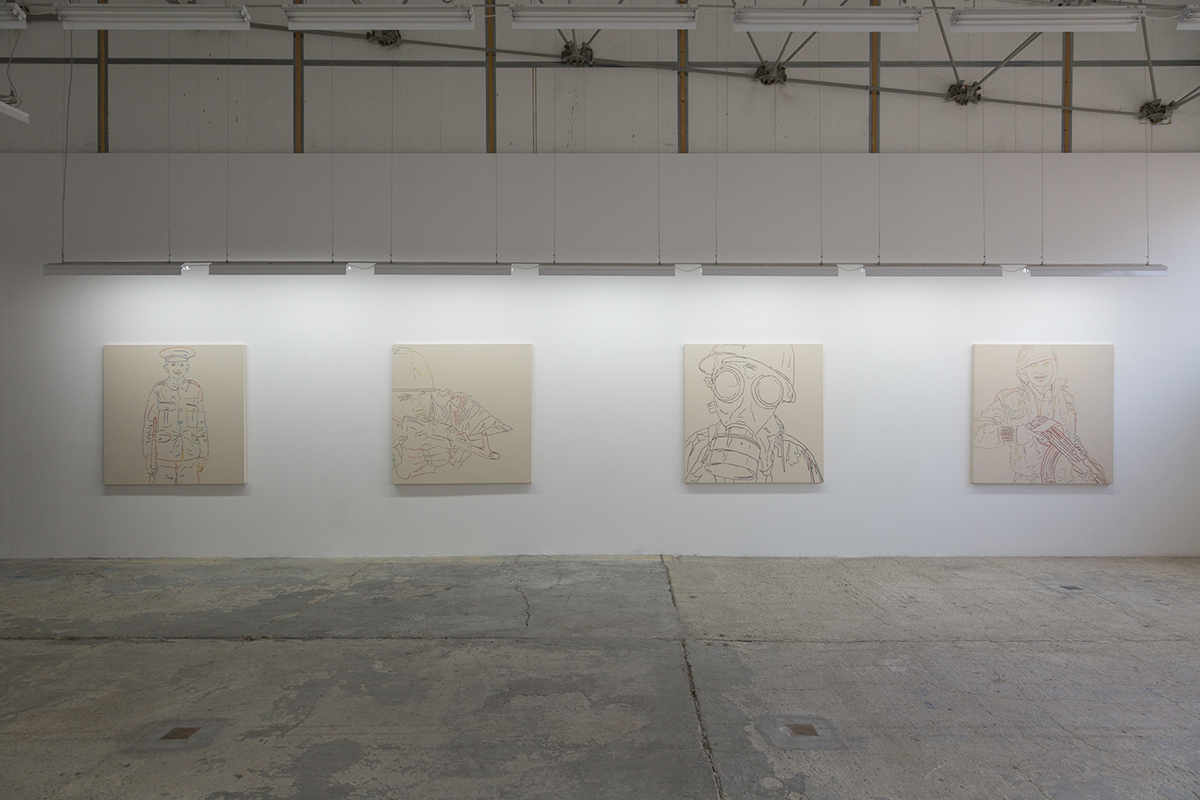 prepuštanja. Likovi sa njegovih vezova pronalaze ovu slobodu u zajedničkom osećanju bola, kroz podeljenu vulnerabilnost, nasilno nametnutu ratom. U momentima krize, borbe i traume, dodir drugog ljudskog bića postaje lek, u komforu saznanja da ti osećaš ono što ja osečam. Franko B predstavlja vojnike i žrtve rata na način koji je s razlogom nazvan homoerotičnim, ali ove slike odlaze mnogo dalje od seksualnosti. Vezovi, ili šavovi, povezuju tela i delove tela, na platnu i u životu, asocijativno postavljeni između goblena i hirurškog zatvaranja rane.
