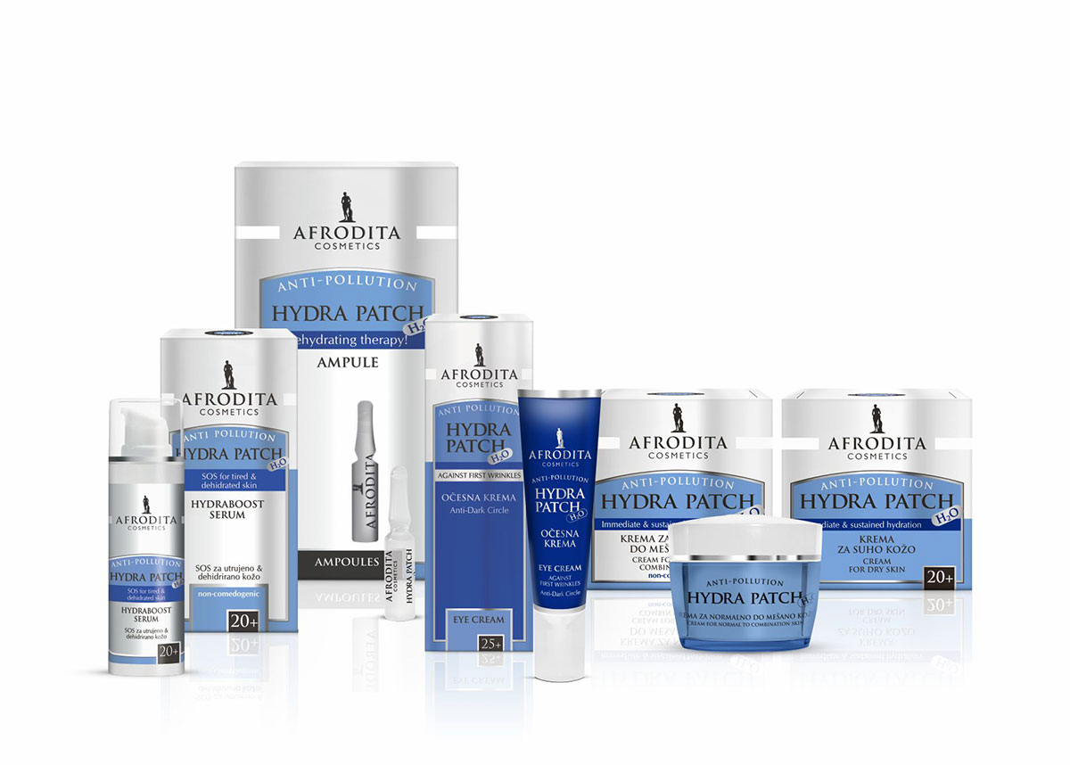 Nova linija HYDRA PATCH kozmetike Afrodita ekskluzivno rješava problem dehidracije kože s aktivnim djelovanjem u borbi protiv onečišćivača. Ova inovacija nadahnuta je jedinstvenom tehnologijom PatcH2O, koja djeluje kao zaštitni i istodobno njegujući H2O flaster.