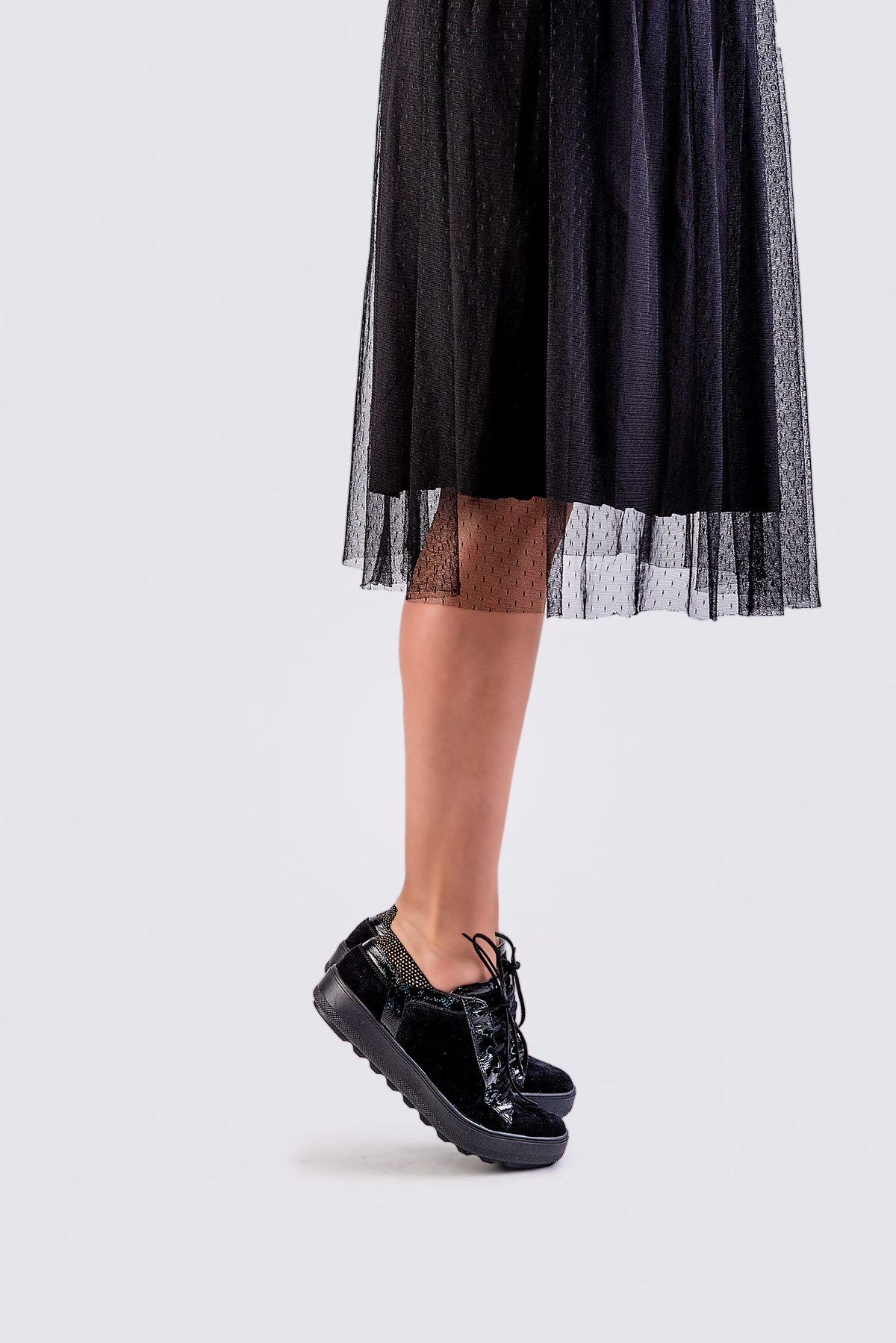 Koža, kao ključni materijal svih Guliver kolekcija, u kombinaciji s teksturalnim panelima izrađenim od pliša, metalnim detaljima ili dodacima izrađenim od „kontrastnih” materijala, još jednom pokazuje koliko ovaj domaći brand prati europske, ali i svjetske modne trendove. Kao i kod nedavno predstavljenih modela cipela izrađenih od pliša i kod tenisica dominiraju zagasiti tonovi – od bordo crvene i tamno-plave nijanse, preko maslinasto-zelene, do klasične crne. Ono što ovu kolekciju čini zanimljivom, osim toga kako se kod svakog modela ručno šivaju đonovi, upravo je igra detaljima pa modelima dominiraju duge vezice koje imitiraju sveprisutne mašne, poznate i iz proljetne Guliver kolekcije tenisica; kontrastni kožnati detalji lakirani do visokog sjaja; paneli na srednjem i stražnjem dijelu izrađeni od pliša istog tona.