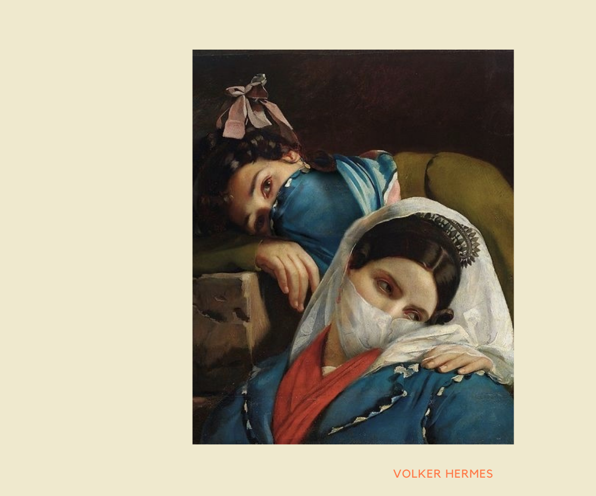 Tokom poslednjih petnaest godina, nemački umetnik Volker Hermes bavio se revizijom poznatih portreta skrivajući usta, oči ili celo lice putem fotomontaža. Njegov projekat „Skriveni portreti“ omogućava nam da se usredsredimo na nešto drugo osim na lica i emocije ljudi, da obratimo više pažnje na odeću i tkanine koje takođe sadrže mnoge detalje. Dovoljno je reći da od globalne pandemije i obaveze da polovinu lica pokrijemo maskom umetnička dela ovog autora dobijaju sasvim novu dimenziju.