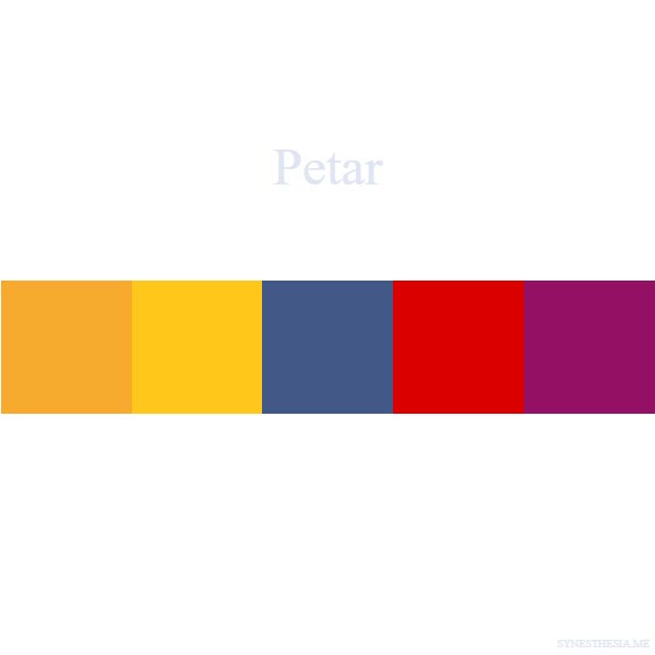 Koje boje je tvoje ime možeš vrlo lako saznati na istoimenom sajtu. I ne nije reč o Facebook kvizu poput onih koji će vam otkriti koja ste Dizni princeza, koliko ste prethodnih života imali ili koje je boje tvoja aura. Reč je o zanimljivom eksperimentu koji nije zasnovan na nekom bezličnom algoritmu. Tvoje ili ime bilo koje osobe koje želiš da uneseš u pretragu biva predstavljeno nizom blokova različitih boja. A kako? Kreatorka sajta, Bernadet Šeridan, ima specifičnu slovno-koloritnu sinesteziju, što znači da njen mozak percipira slova i brojeve kao specifične boje.