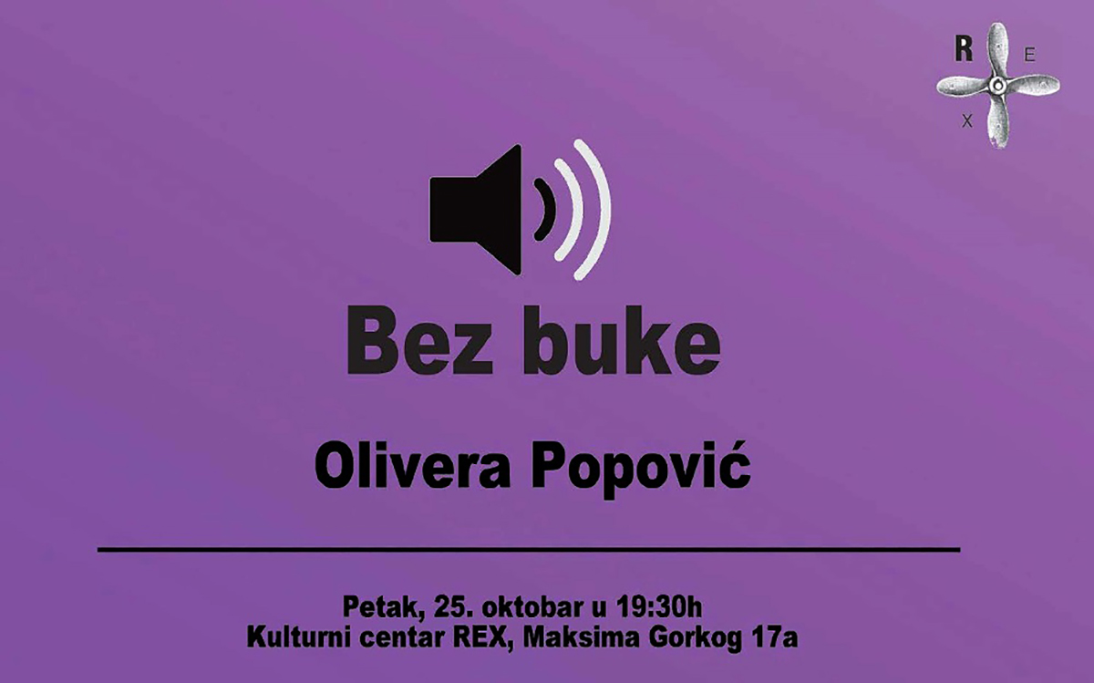 Prvi koncert prepa(r)kiranja i testiranja formata nove lokacije i novog sadržaja, a starog koncepta Bez buke pripašće Oliveri Popović koja u tandemu sa Milicom Uzelac redefiniše i redeterminiše egzistenciju i funkciju ove bivše čekaonice centra za socijalni rad.