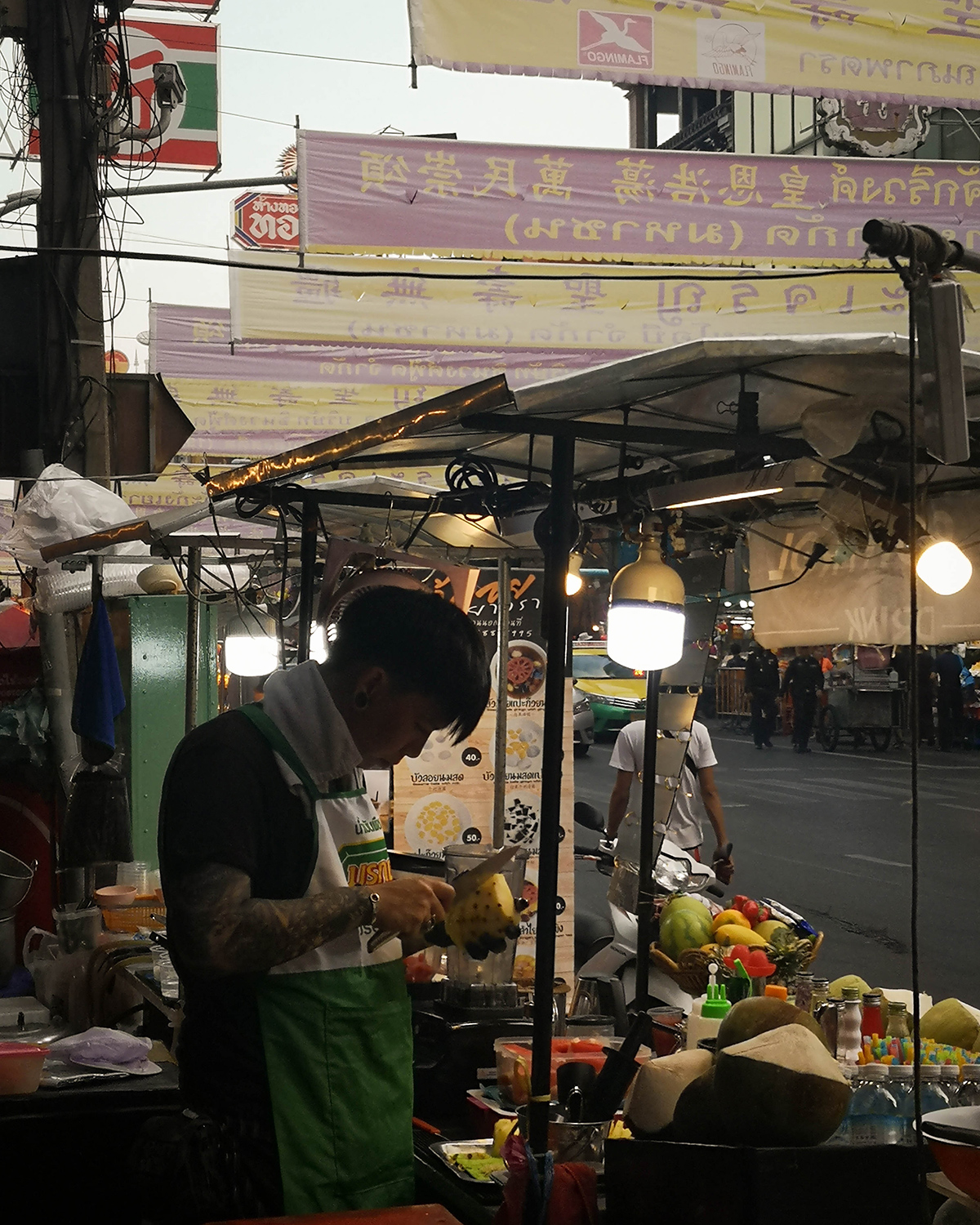 Ako postoji nešto što je zajedničko svim kontinentima, onda je to „zadah“ izduvnih gasova i mokraće koji na tropskim temperaturama, nažalost, postaje nešto intenzivniji nego inače. Srećom, vrućina pojačava i druge mirise i osećaje, naročito kada sunce krene ka zalasku i kada se težina čitavog sveta nekako sruči na Aziju. Kad otkuca zlatni sat, u Bangkoku ne možeš da misliš ni o čemu osim o pesmi Summer in Siam i narandžastoj boji spota koju vidiš svaki put kad pogledaš ka nebu; u Delhiju posmatraš ogromno sunce koje boji slojeve zagađenja; na ostrvima čkiljiš kroz izmaglicu dima tek zapaljenih vatri na uličnim tezgama – i dok ti atmosfera pritiska pluća i dok stoti put nesvesno izvodiš već dobro uvežbani manevar brisanja znoja sa brkova – ulica počinje da živi.