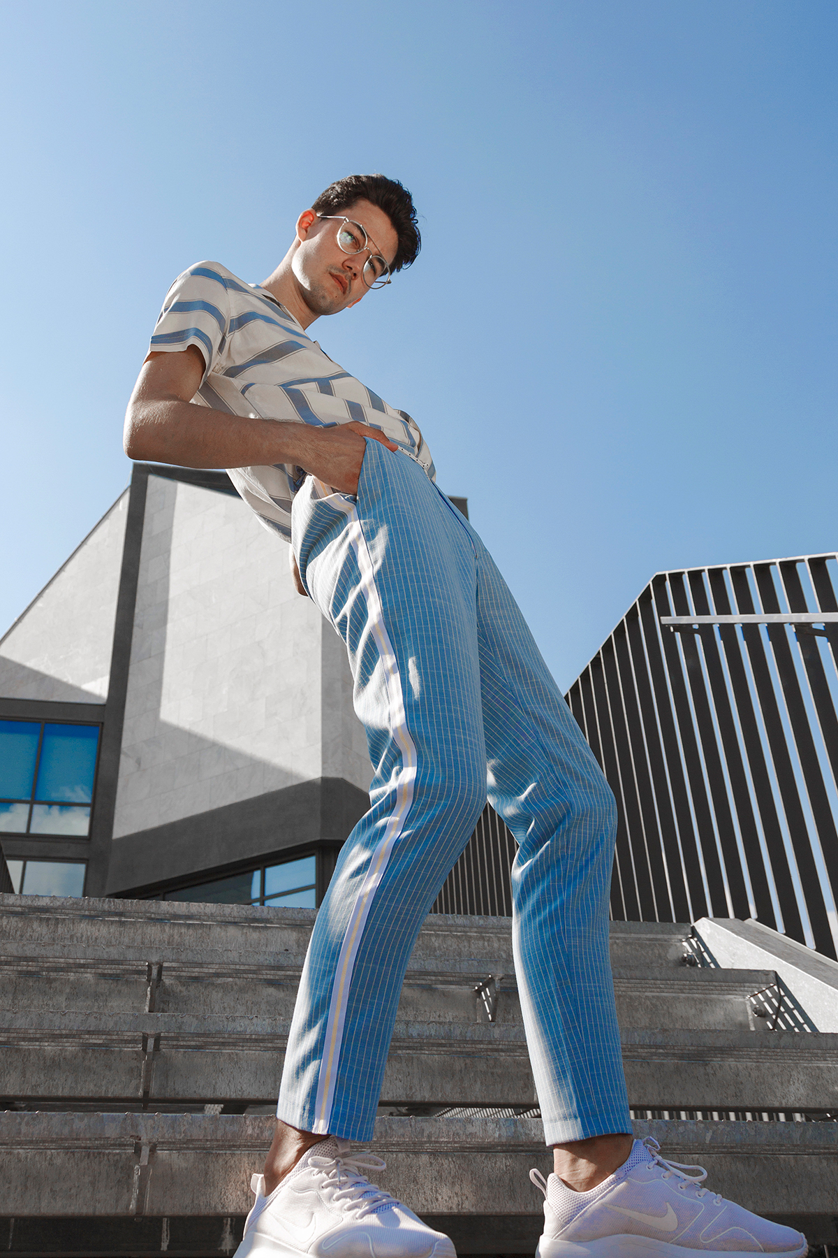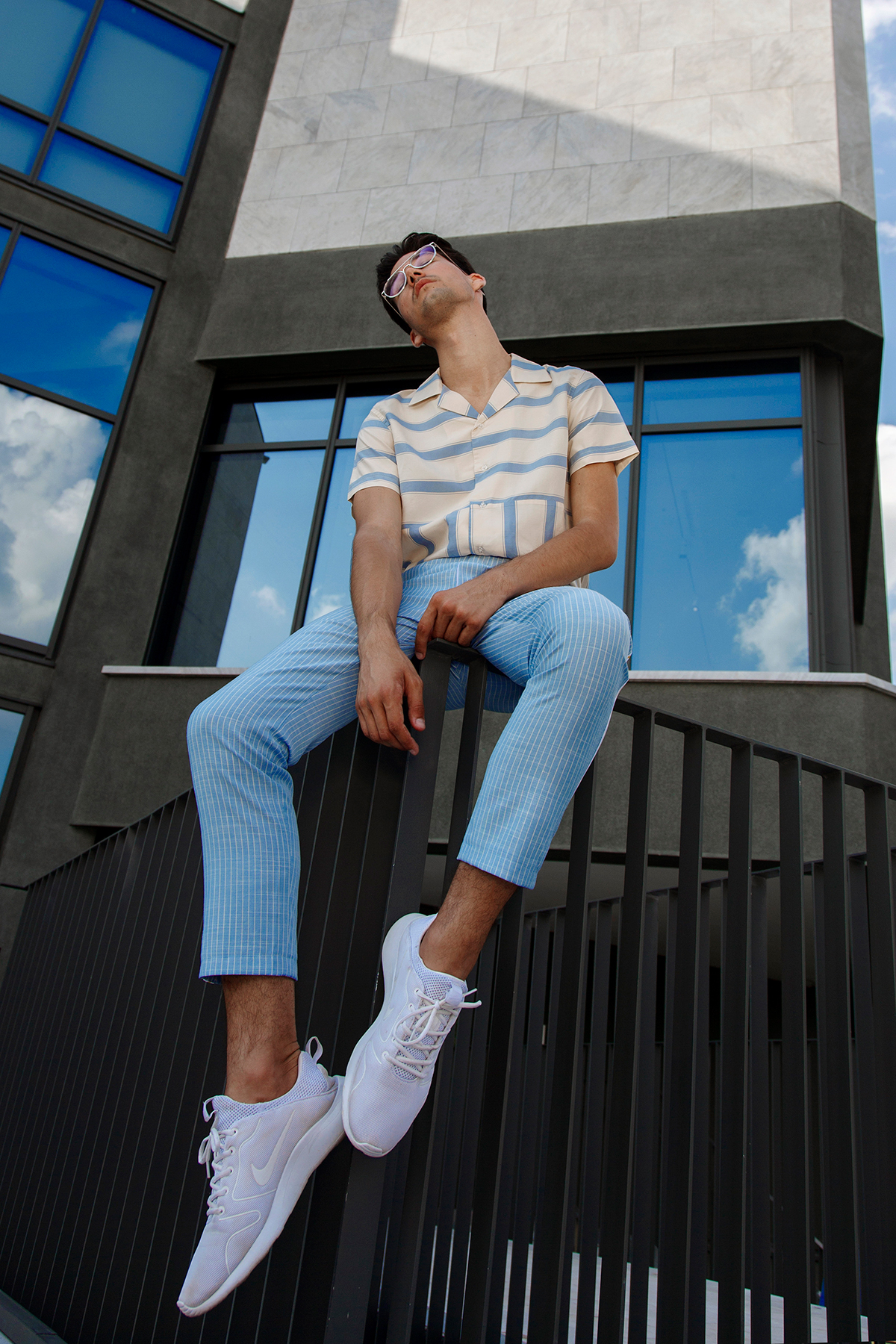 Od materijala koji su korišćeni, primetno je da kolekcijom dominiraju pamuk, lan, svila i viskoza koje ne viđamo toliko često u muškim kolekcijama. Paletu boja čine nebesko plava, bela, teget, siva i žuta.