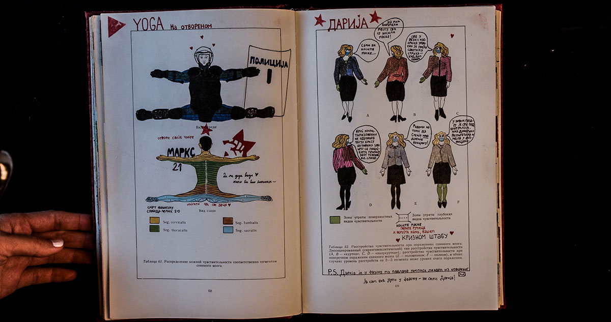Radovi predstavljaju hroniku događaja koji su obeležili društveni i politički život Beograda kroz formate umetničkog dnevnika i intervencije na knjizi.
