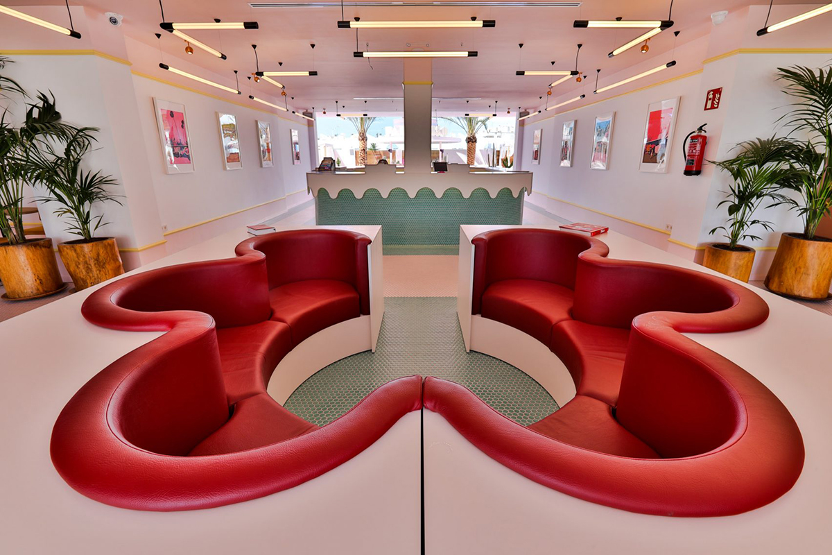 Red ružičaste, red oranž, red žute uz neizostavnu tirkiznu (čisto da nas podseti da smo na moru) čine paletu boja koja dominira enterijerom ovog umetnošću inspirisanog hotela koji je uz to i veoma i fotogeničan, što je u vremenu Instagrama ogroman plus. Imajući u vidu da se nalazi u centru zbivanja kada su najbolje žurke u pitanju, tim koji je radio na projektu želeo je da zabava i umetnost budu utkani u svaku pločicu i svaki kvadratni metar prostora. Naš subjektivni osećaj je da su u tome i te kako uspeli. FIESTA!