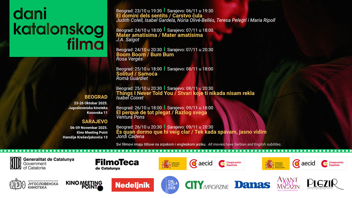 Manifestacija Dani katalonskog filma predstaviće sedam filmova, vođenih tematskom linijom: Žene, pogledi i disidencije.  Izabran u punoj saradnji sa Filmotekom Katalonije, ovogodišnji program je formiran kao svojevrsno putovanje kroz noviju istoriju katalonskog filma, njegovu raznolikost izraza i senzibiliteta.