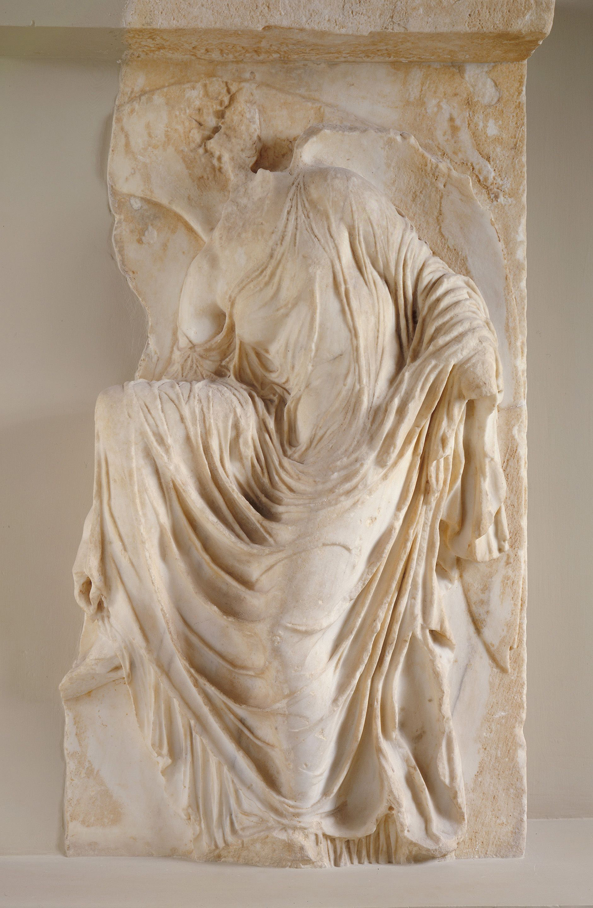 Govoriti o odjeći kod Grka znači govoriti o njenom veličanstvu draperiji. Draperija je tkanina složena u nabore, odnosno takva da svojim slobodnim padom izaziva stvaranje nabora. Da bi se to postiglo, odjeća nije krojena, već su se koristile slobodne površine materijala u raznim odnosima.