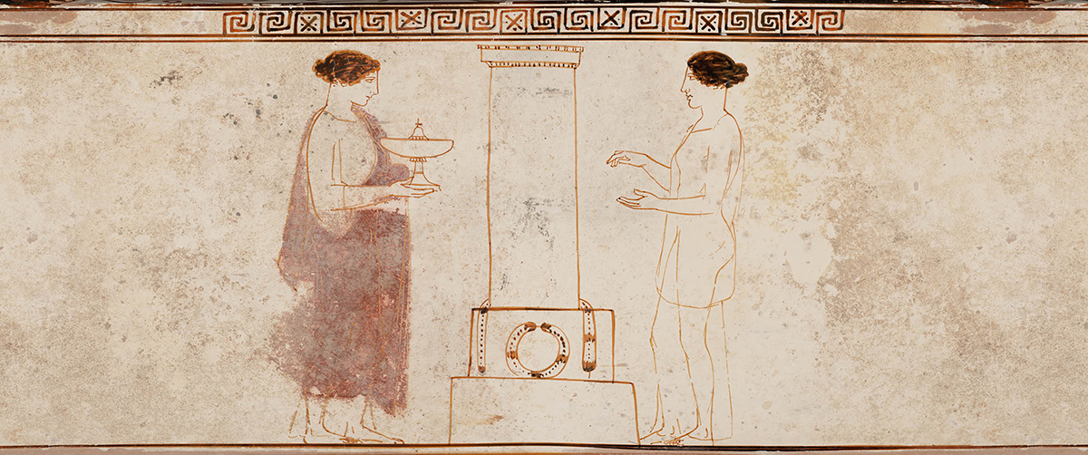 Ono što danas znamo o modi antičkog svijeta dugujemo na prvom mjestu umjetnosti i ponekom spisu koji govori o običajima antičkih civilizacija. O modi Antičke Grčke saznajemo uglavnom kroz vajarska djela i skulpture te slikarstva sa vaza, budući da je zidno slikarstvo nesačuvano do današnjih dana. To nije slučaj sa umjetnošću Rima, gdje je, „zahvaljujući” erupcijama Vezuva, kada su čitavi gradovi bili zakopani u drevna vremena, a potom i otkopani prethodnih vijekova, pronađen veliki broj potpuno očuvanih umjetničkih djela, između ostalog i fresko-slikarstva.