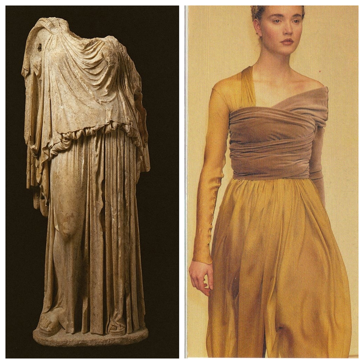 Mimezis je upravo ono na čemu se, bili mi svjesni ili ne, zasniva naše shvatanje odjeće. Kada se odjeća kreira, ona se kreira tako da isprati oblik tijela, i to u smislu oponašanja. Tako i jakna i majica i pantalone i haljina suštinski prate liniju tijela, bez obzira na mogućnost manjeg ili većeg odstupanja. Mi gotovo da ne prepoznajemo kao odjeću ono što nema oblik tijela, ono što nije ukrojeno, oblikovano, precizno i jasno, tako da tim oponašanjem nedvosmisleno ukazuje na svoju funkciju. Odjeća nam je danas kod za funkciju, koji može biti više ili manje čitak; čak i onaj dizajn koji odbija prostu imitaciju oblika tijela ipak referiše na njega; i skulpturalna, avangardna modna djela ipak su osmišljena tako da stabilnošću oblika mogu biti nošena samo na jedan način. Upravo to je koncept koji antička moda ne poznaje, posebno moda Antičke Grčke. Odjeća je ovdje shvaćena kao potpuno nezavisan element, koji, naizgled paradoksalno, svoju nezavisnost zasniva na mogućnosti prilagođavanja tijelu.