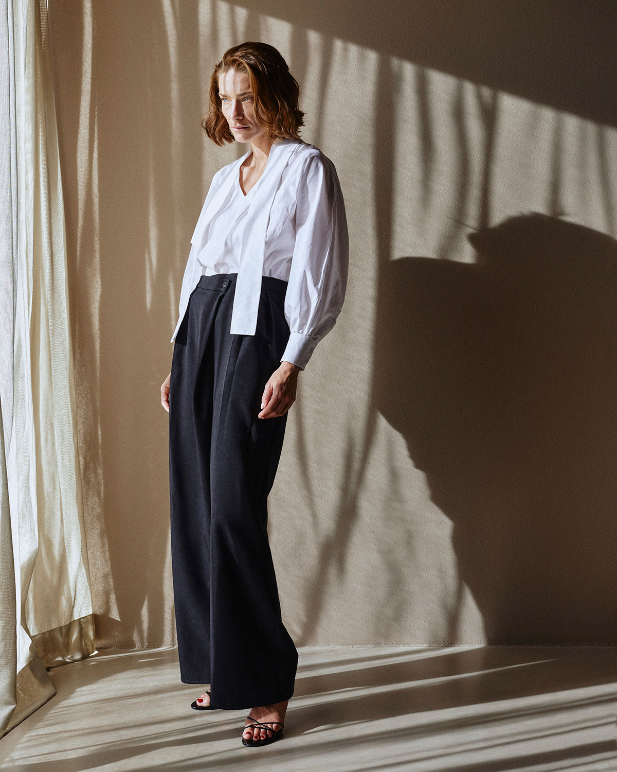 Košulje u ovoj kolekciji donose nežan pomak od klasike kroz dodatak u vidu trake oko vrata ili imitacije kravate za neophodnu dozu svežine, zaigranosti i nenametljive originalnosti. Pantalone dolaze u dve varijante, strogi šargarepa kroj za prefinjenu, strukturiranu siluetu i opušteniji kroj sa spuštenim strukom za prirodniji, ležerniji ritam. Upravo ta raznolikost krojeva omogućava da se svaka žena pronađe u modelu koji odgovara njenoj ličnosti i načinu života.