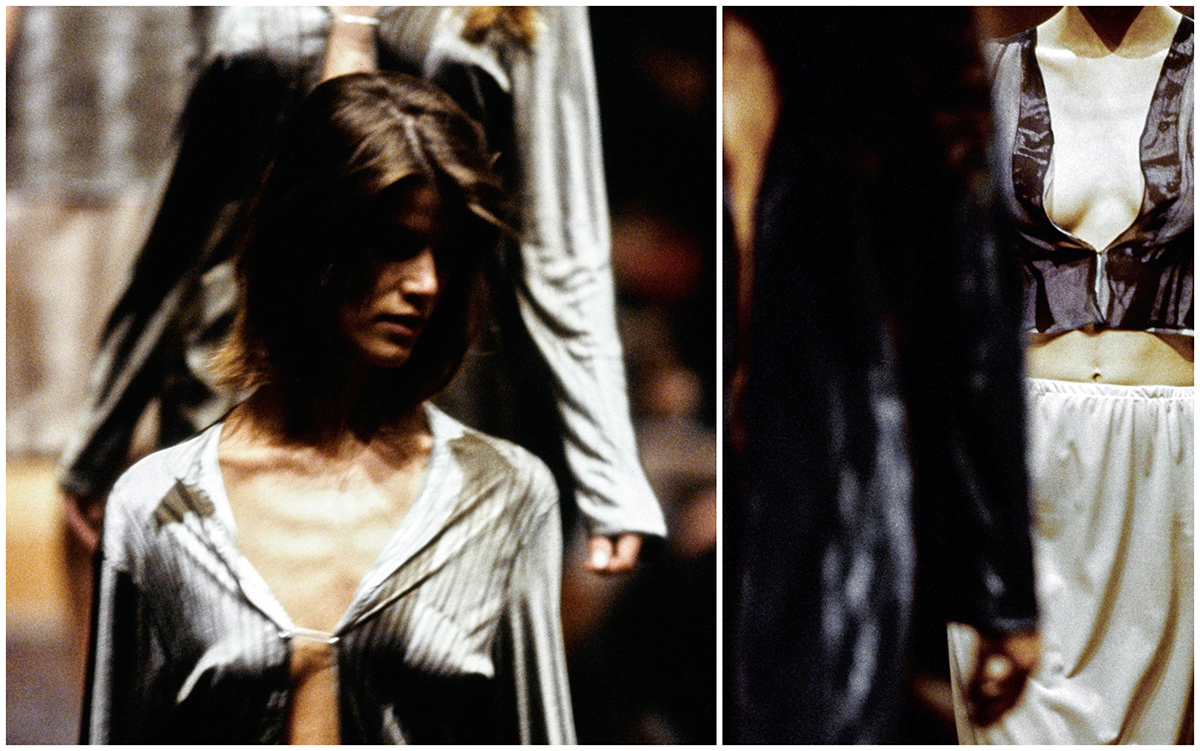 Posmatrajući pojedine komade koje su manekenke nosile, ponovo postaje jasno kako se pitanje ličnog i bezličnog, javnog i intimnog, modnog i anti-modnog javljaju već u samom dizajnu: jedno jedino dugme koje postoji na košulji sakriva grudi, i naglašava koliko je malo potrebno da ono intimno to prestane biti. Oslikavajući i lijepeći šljokice za jeftine haljine dizajner sredstvima trompe l’oeil koketira sa modnom istorijom kao istorijom glamura, preispitujući je, ali bez distanciranja koje bi vodilo u drugu vrstu elitizma. Pošto ni prošlost za Margielu nije prošlost, taj postupak je zapravo samokritika više nego bilo šta drugo.