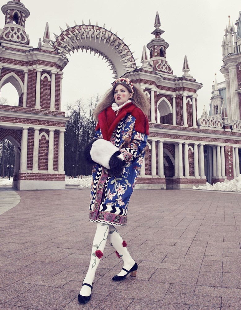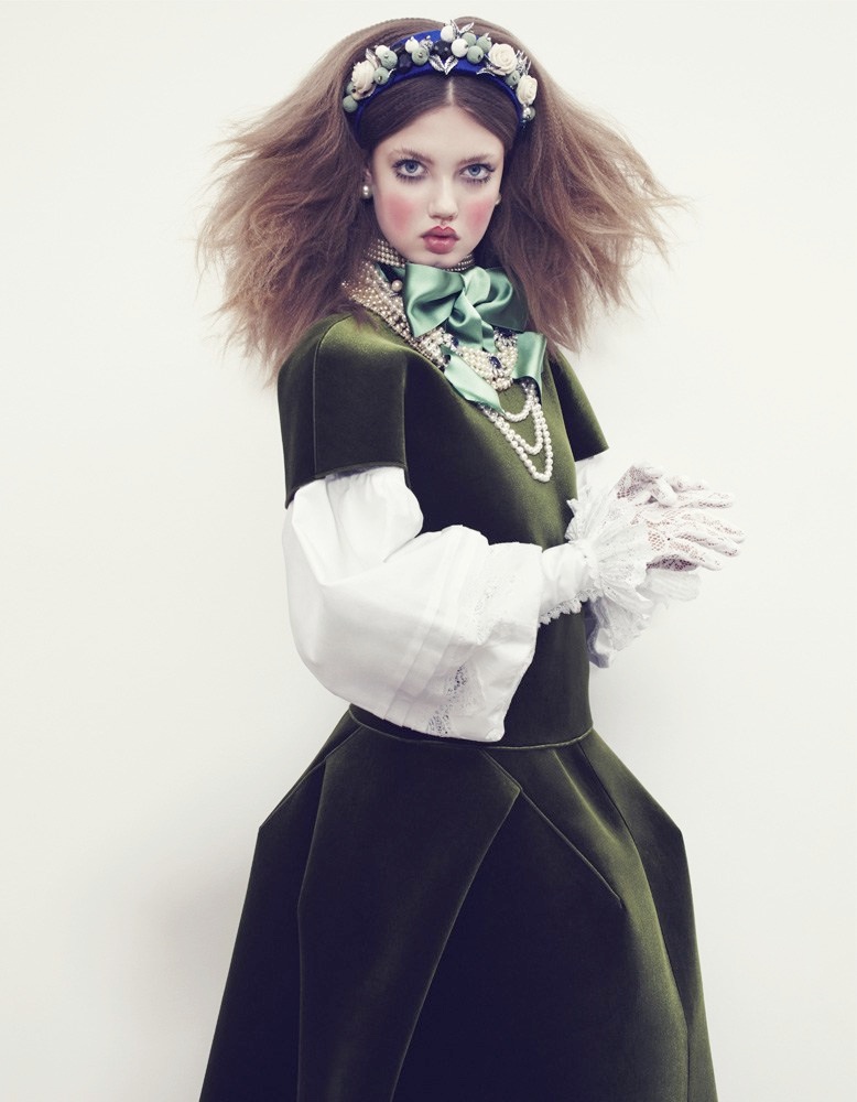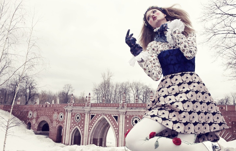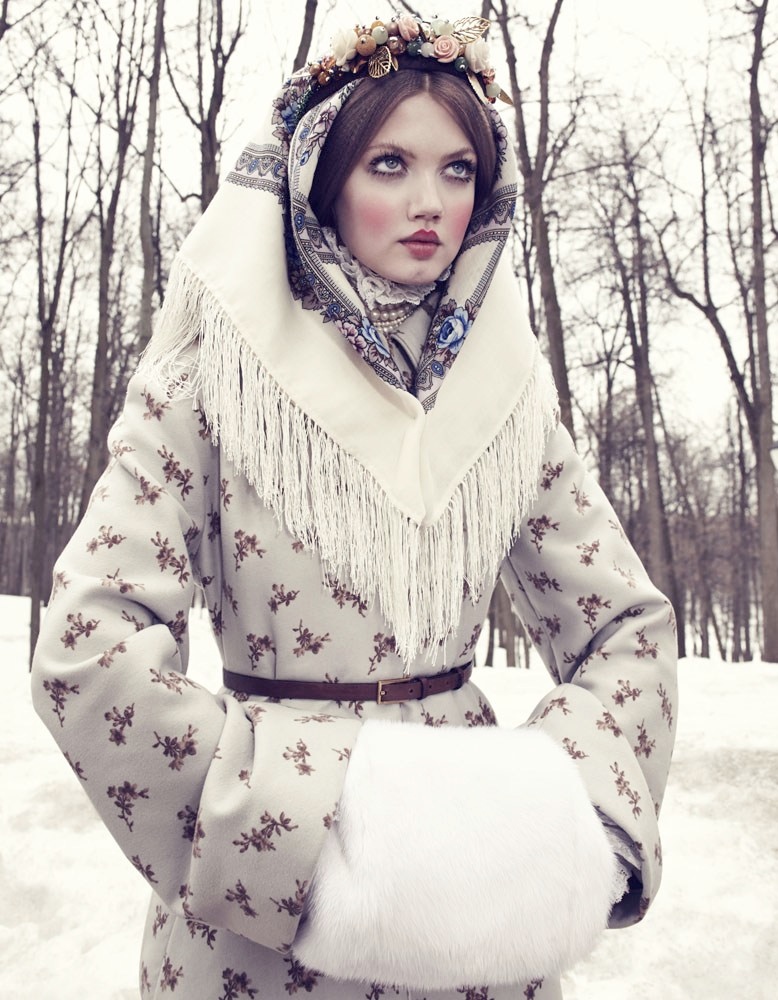 Zimska idila, Lindsey Wixson poput porcelanske lutke, komadi Dolce & Gabbana i Louis Vuitton savršeno stilizovani zahvaljujući Giovanni Battagliji.